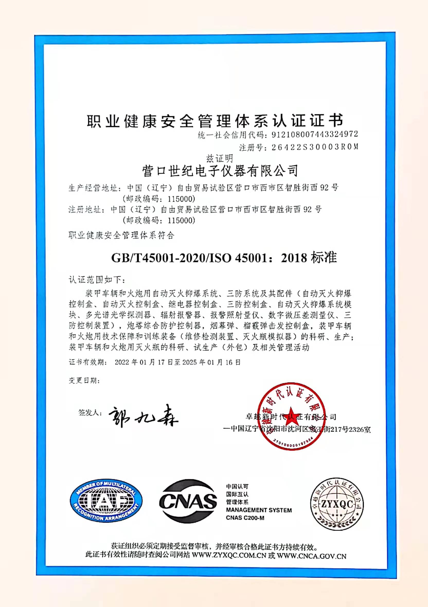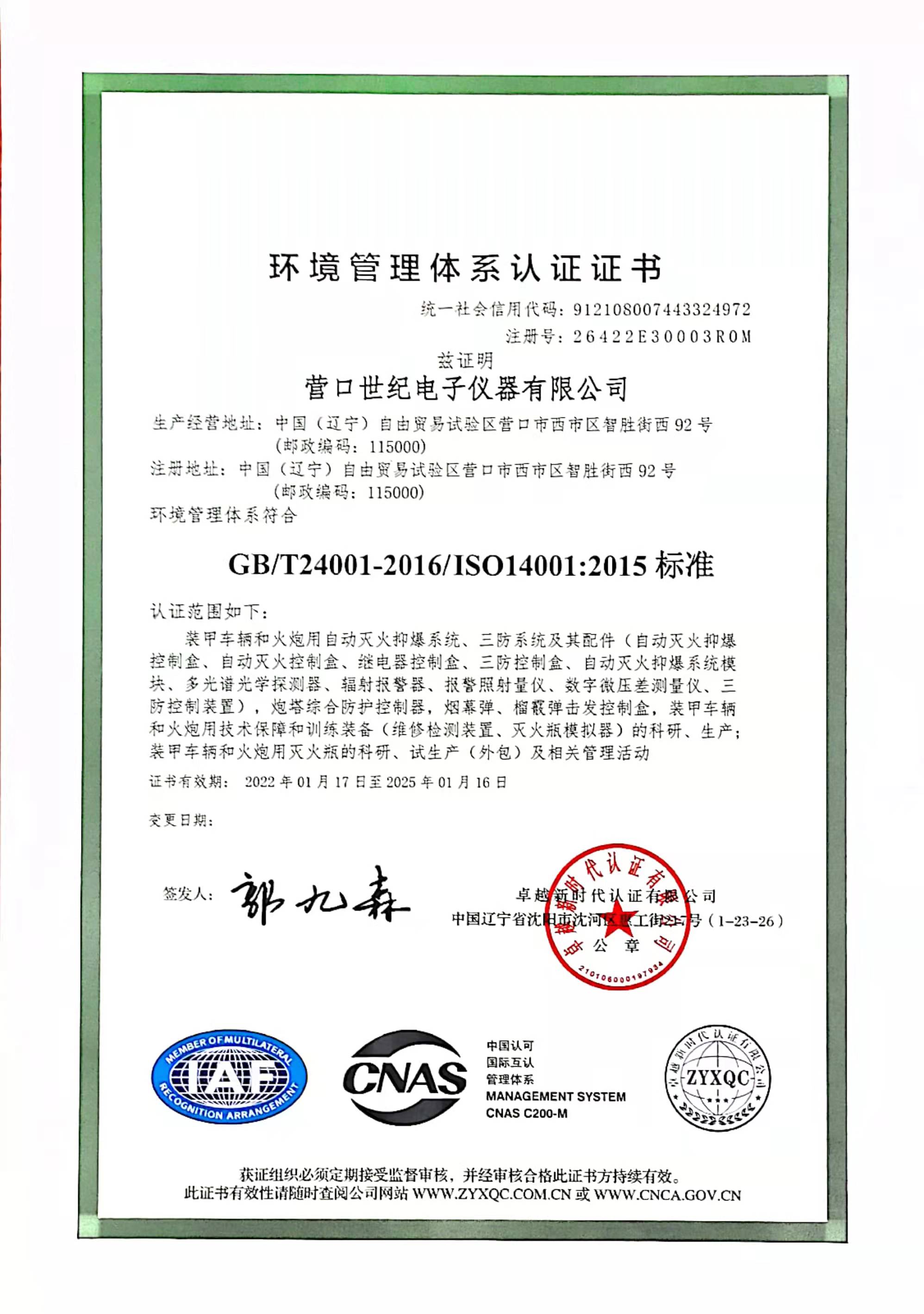 營(yíng)口世紀(jì)電子儀器有限公司成功通過環(huán)安體系認(rèn)證